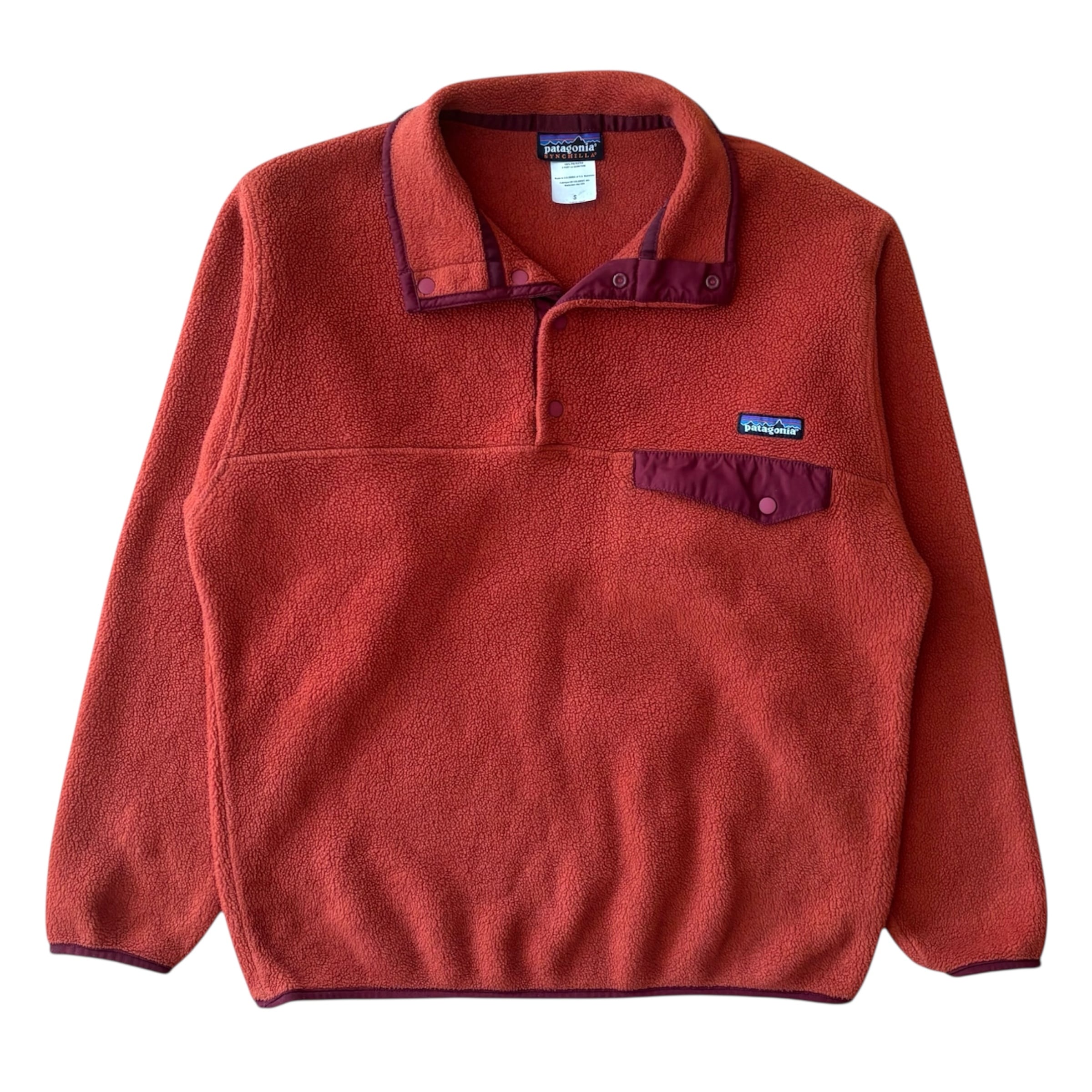 こちらは既に廃盤となっている、USA製 F5 OLD PATAGONIA です。市場でも非常に人気が高く、近年価格が高騰しているオレンジカラーで、現在では入手困難な希少カラーとなります。お探しの方も多い一着です。サイズ表記はSですが、着用感はUSA規格のS〜M相当。メンズ・レディース問わずご着用いただけるユニセックスデザインで、幅広いコーディネートに活躍する高品質なシンチラフリースです。