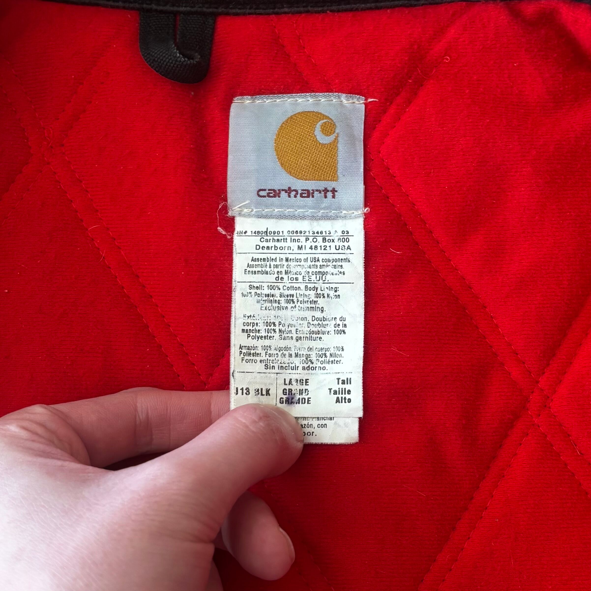 全体的に使用感は少なく、これから着込んで経年変化を楽しみたい方や、Vintage Carharttがお好きな方にも刺さる個体かと思います。裏地は鮮やかなレッドのキルティングで、デザイン性・人気ともに高いポイント。大切に保管されていたため、内側の状態も良好です。また、袖口・裾のリブに破れや伸びはなく、非常に綺麗なコンディションを保っています。タグも完品で文字の擦れは見られず、目立つダメージはございません。全体的にコンディション良好な個体です(詳細は写真をご確認ください)。近年、ヴィンテージ Carhartt は人気カラー・人気モデルを中心に枯渇が進んでおり、今後さらなる価格高騰も予想されます。ぜひこの機会にご検討ください。