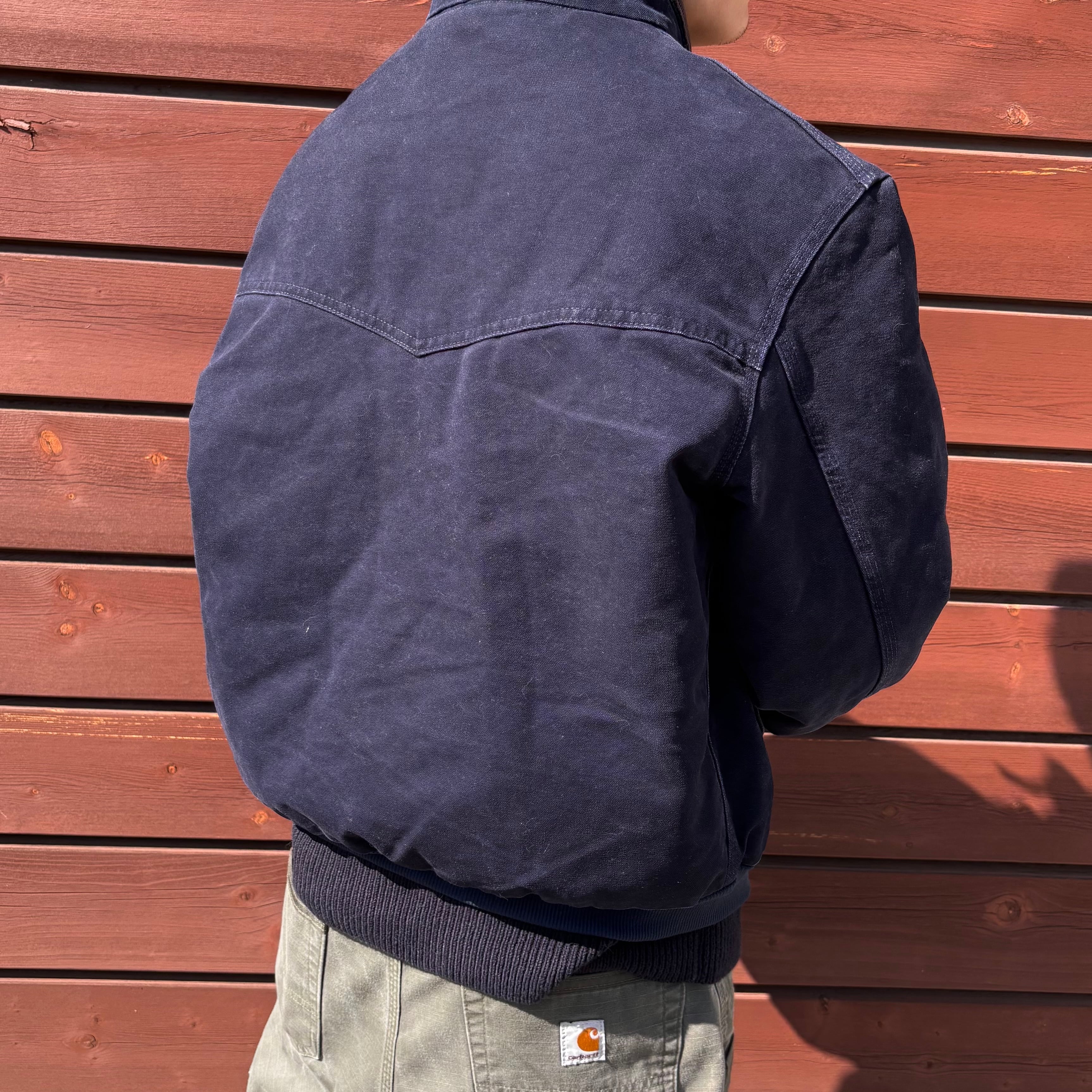 全体的に使用感はほとんどなく、生地の色残りも濃いダークネイビー。非常に使いやすいカラーで、これから着込むことで美しいフェードを楽しめます。経年変化を楽しみたい方にもおすすめの個体です。大切に保管されていたため内側の状態も良好。袖口・裾の各リブにも破れや伸びは見られず、全体として非常に綺麗なコンディションを維持しています。着用を重ねることでさらに渋みが増し、どんなスタイルにも自然に馴染む万能なカラーです。