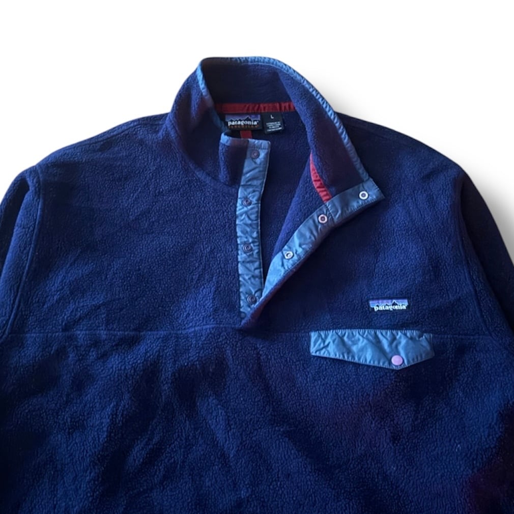 市場で需要の高いLサイズ。廃盤となった肉厚タイプはさらに希少価値が高まっています。ユニセックスなデザインなので、幅広いスタイリングに対応可能です。タグも完備しており、大切に保管されてきた美品です。写真をご覧いただければ、状態の良さがお分かりいただけるかと思います。スナップボタンはすべて正常に機能しており、フリースのコンディションも非常に良好です。目立ったダメージや穴などはございません。Old Patagoniaの価格が高騰している今、ぜひこの機会をお見逃しなく。