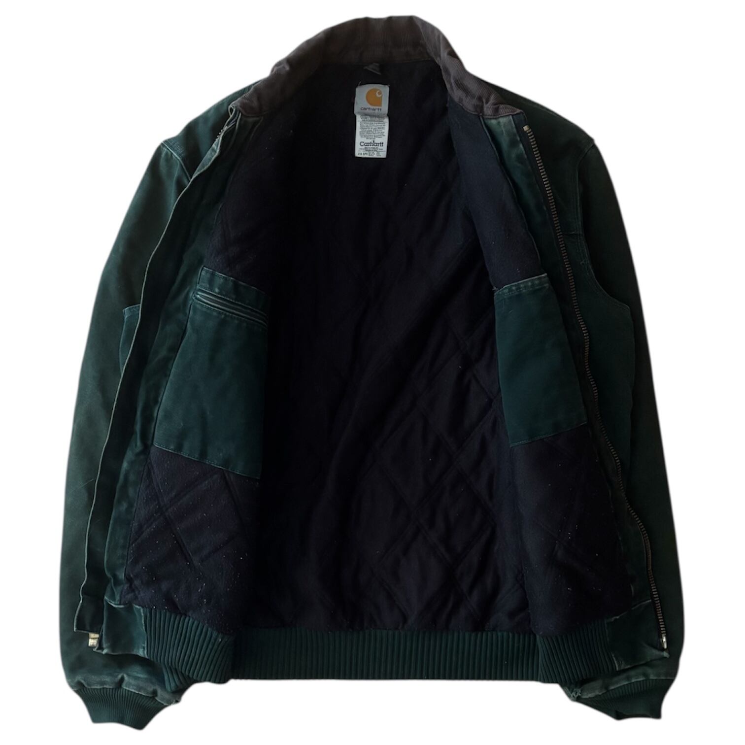こちらは2004年1月製・USA製のVintage Carharttです。市場でも流通数の少ない廃盤カラーに加え、異素材の襟仕様も魅力の一着。需要の高いLサイズで、短丈・ジャストサイズで今っぽく着用したい方にもおすすめです。今季トレンドのデニムとも相性が良く、幅広いスタイリングに取り入れやすいカラーリングもポイントです。