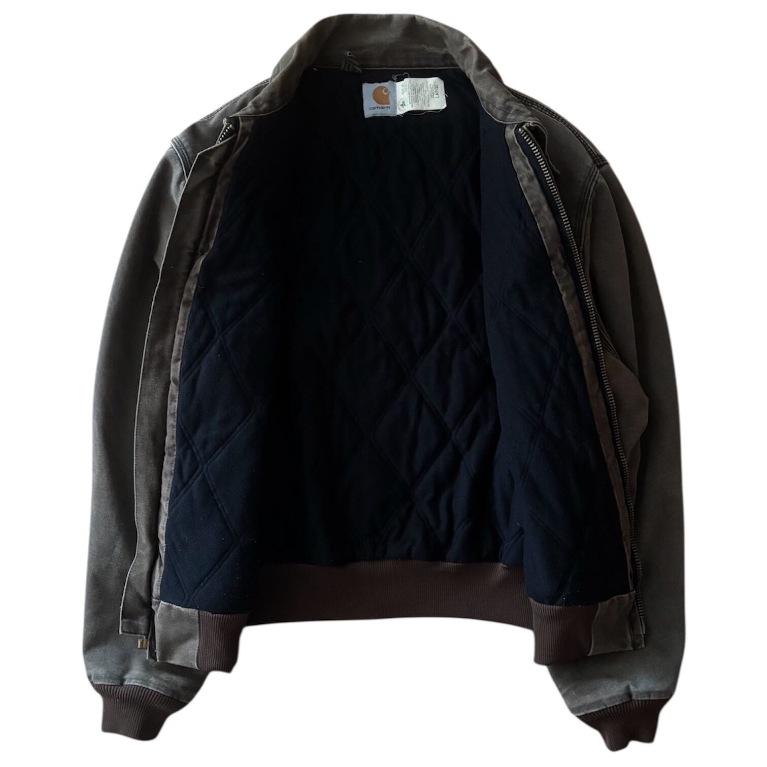 全体的に長年の着用によるフェードが美しく現れており、濃いブラウンダックが絶妙に色落ちした、いわゆる「当たり個体」。無骨なワークウェア特有の雰囲気と上品さを兼ね備えた理想的な経年変化です。キルティングライナーも健全で、袖口・裾リブに伸びや虫食いは見られません。ヴィンテージとしては非常に良好なコンディションを保っています。